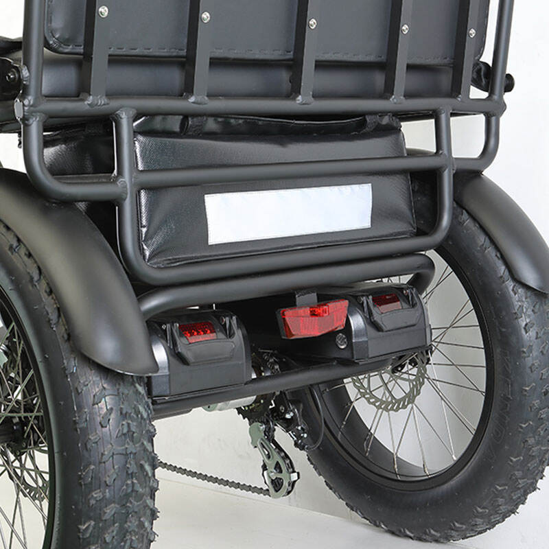 Equipped with a powerful 48v 19.2AH Lithium Battery, this Trike Electric Bike provides ample power to traverse any terrain. Whether you're cruising through the city streets or exploring off-road trails, the long-lasting battery ensures you'll never be left stranded.